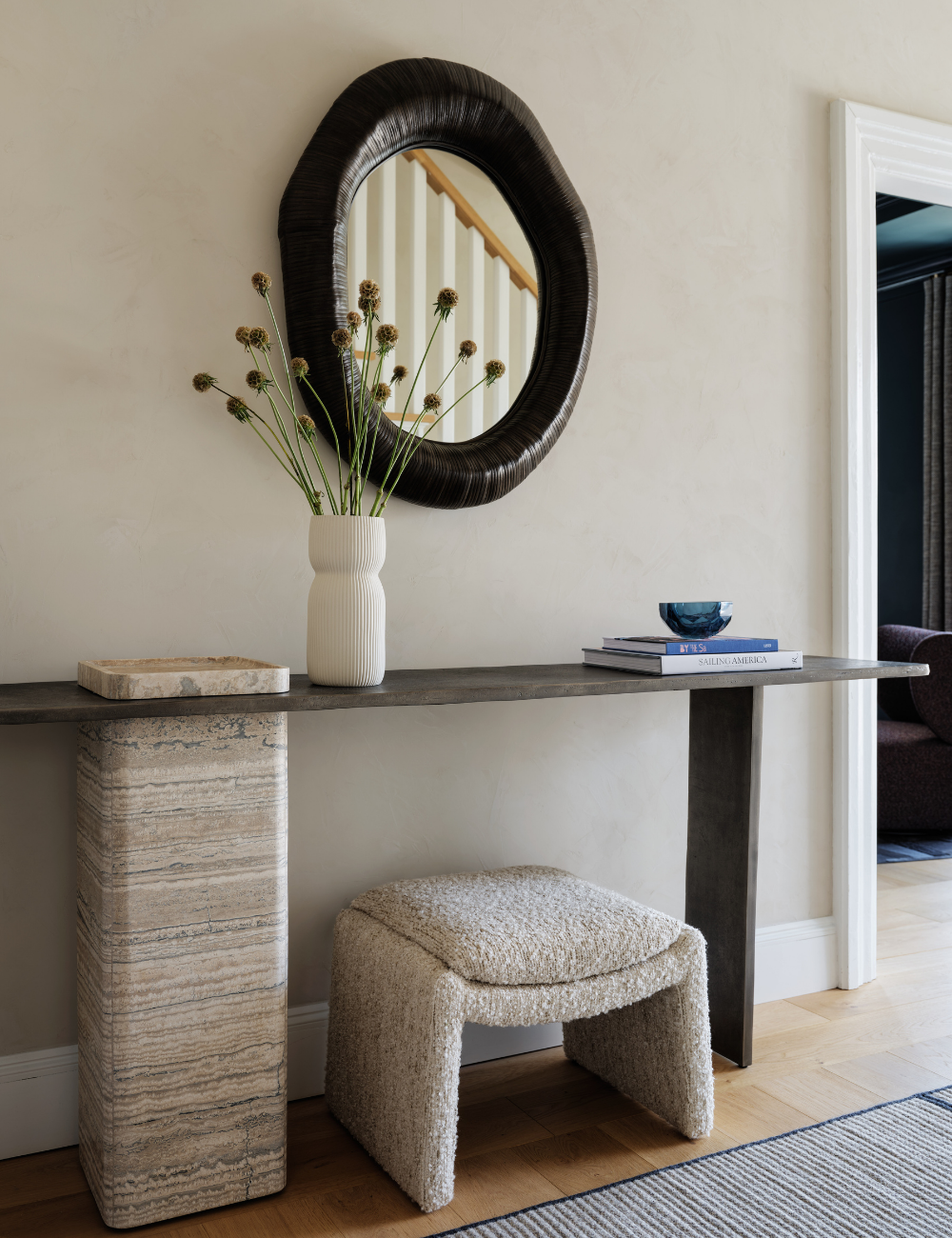 The homeowners came to our team seeking a more sophisticated direction, one that moved beyond the expected coastal aesthetic. Having collaborated twice on their urban home, we set out to create a space that feels elevated enough for entertaining while also serving as a comfortable family retreat.