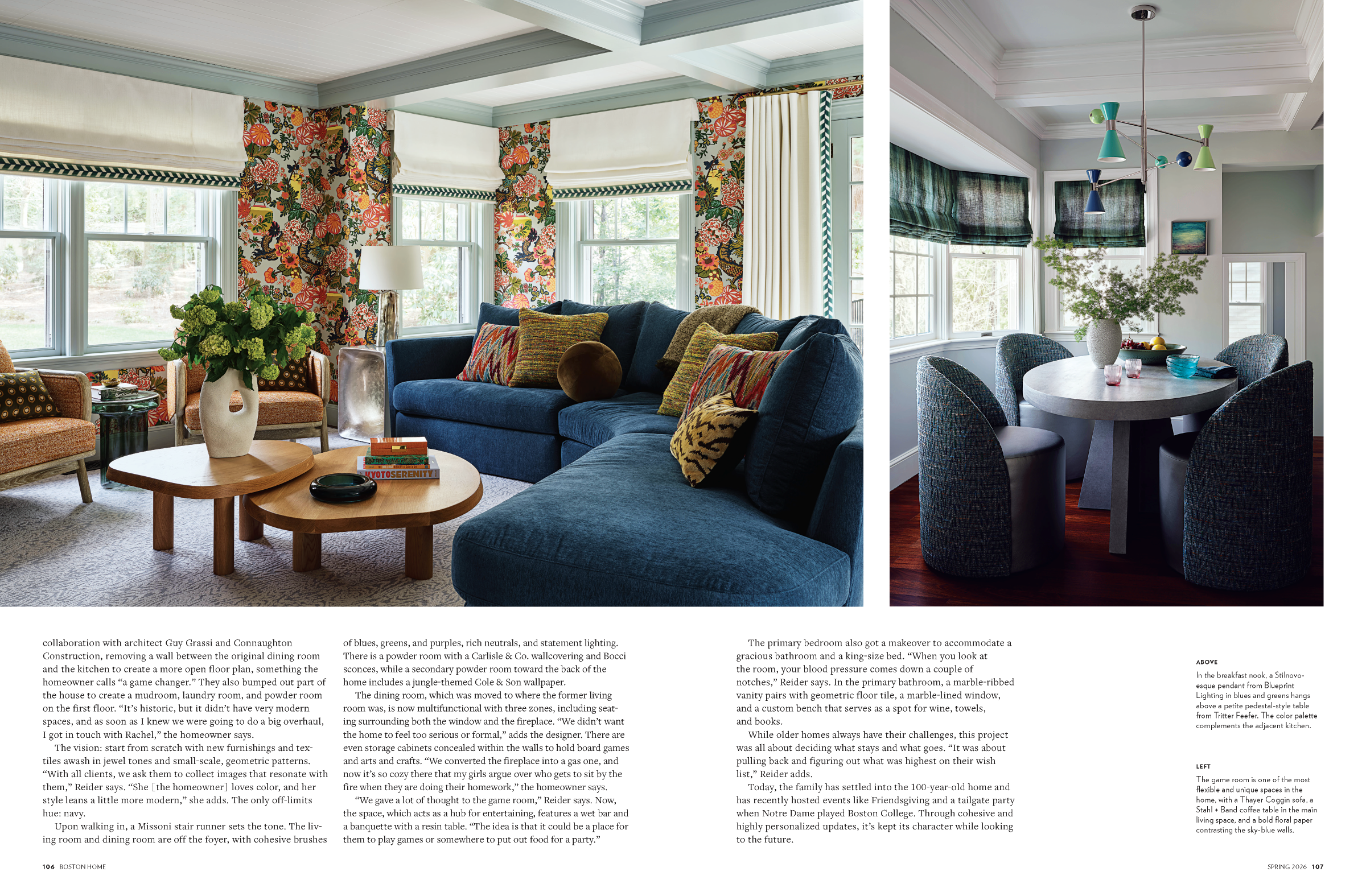 A Vibrant Reboot BOSTON HOME MAGAZINE Mar 11 Written By Jess Kaplan see the full project → Featured Press + Awards Featured A Vibrant Reboot Reider + Co Wins 2026 Modern Luxury Interiors’ Best of Design: Best Interior Design Team Reider + Co is named Best of Boston Home 2026 – Best Interior Designer, Contemporary See all Press → Jess Kaplan